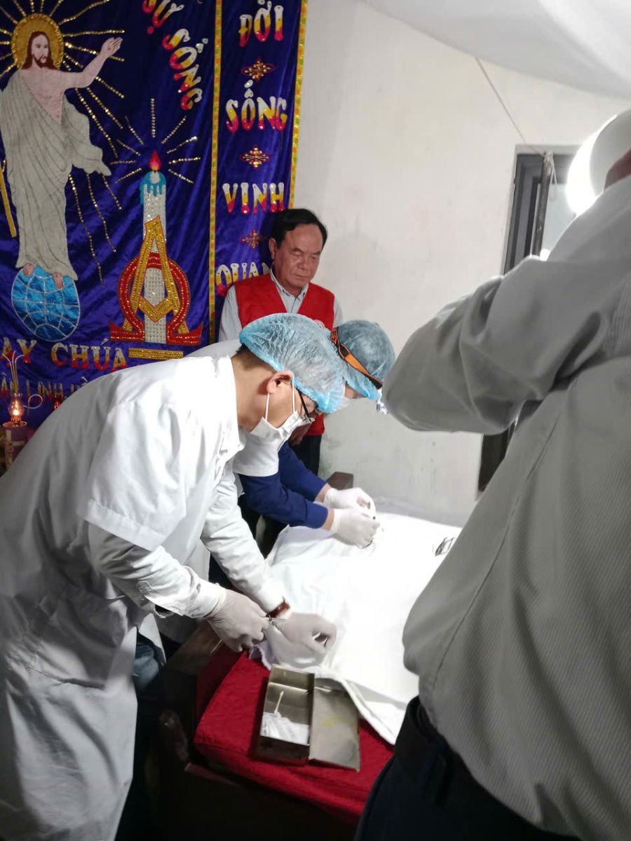 Các bác sỹ thực hiện tiếp nhận giác mạc của em Phạm Thị Hường