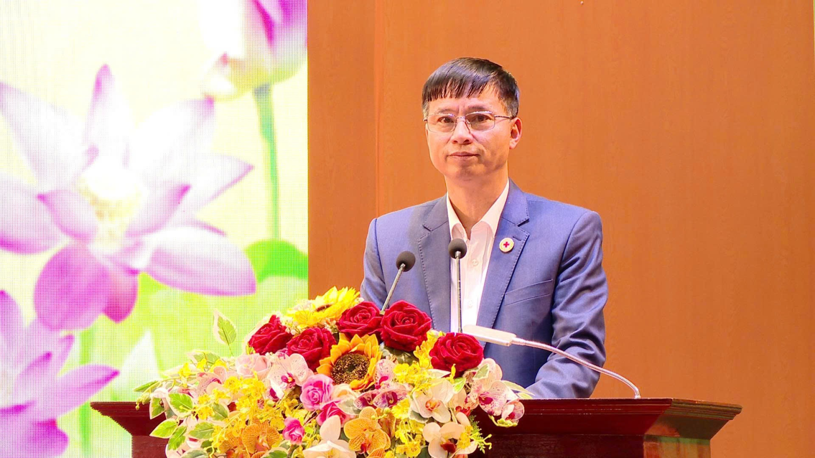 Ông Tống Văn Tam - Chủ tịch Hội Chữ thập đỏ tỉnh phát biểu tại Chương trình