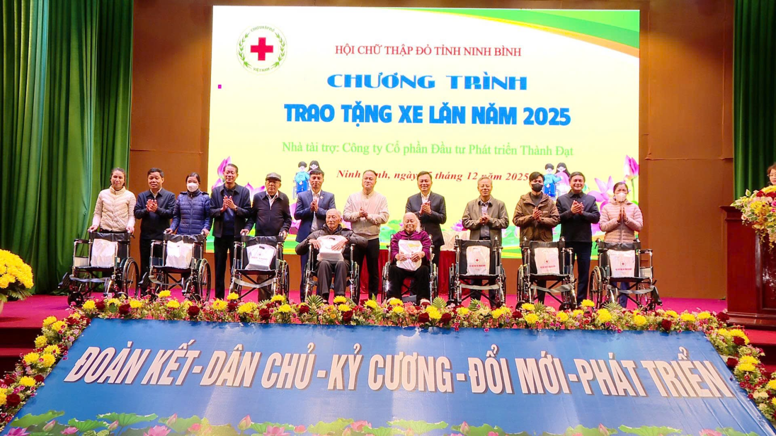Trong không khí ấm áp đón Giáng sinh, ngày 25/12/2025, Hội Chữ thập đỏ tỉnh Ninh Bình phối hợp với chính quyền địa phương tổ chức chương trình trao tặng 26 chiếc xe lăn cho người khuyết tật, người gặp khó khăn trong đi lại trên địa bàn các phường Duy Tân, Duy Tiên và Đồng Văn.