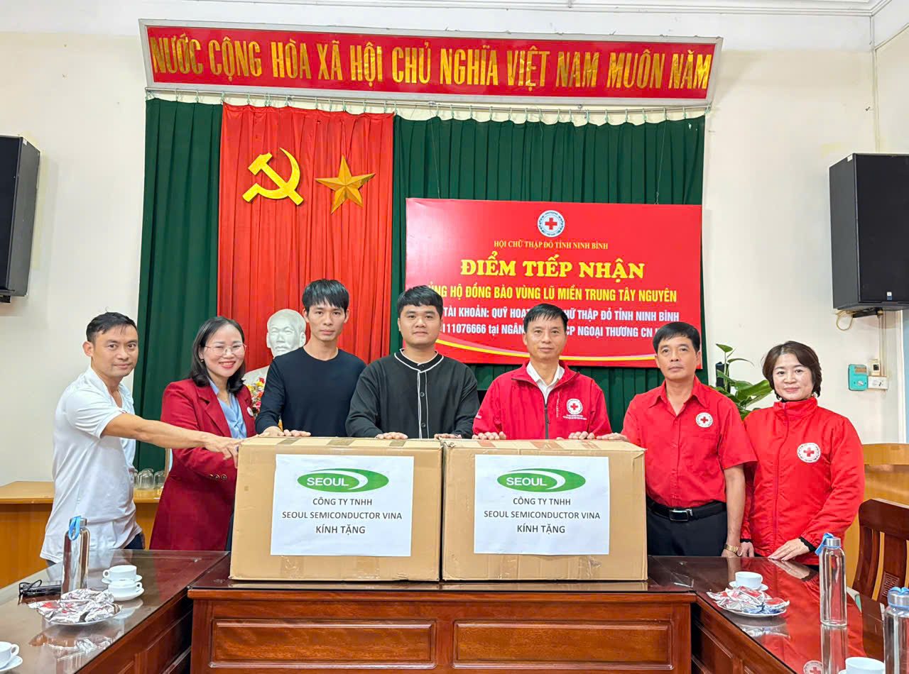 Ngày 28/11/2025, Hội Chữ thập đỏ tỉnh Ninh Bình đã tiếp nhận lô hàng cứu trợ do Công ty TNHH Seoul Semiconductor Vina trao tặng nhằm hỗ trợ đồng bào miền Trung – Tây Nguyên bị ảnh hưởng nặng nề bởi mưa lũ kéo dài. Tổng trị giá hàng hóa hỗ trợ là 60 triệu đồng.
