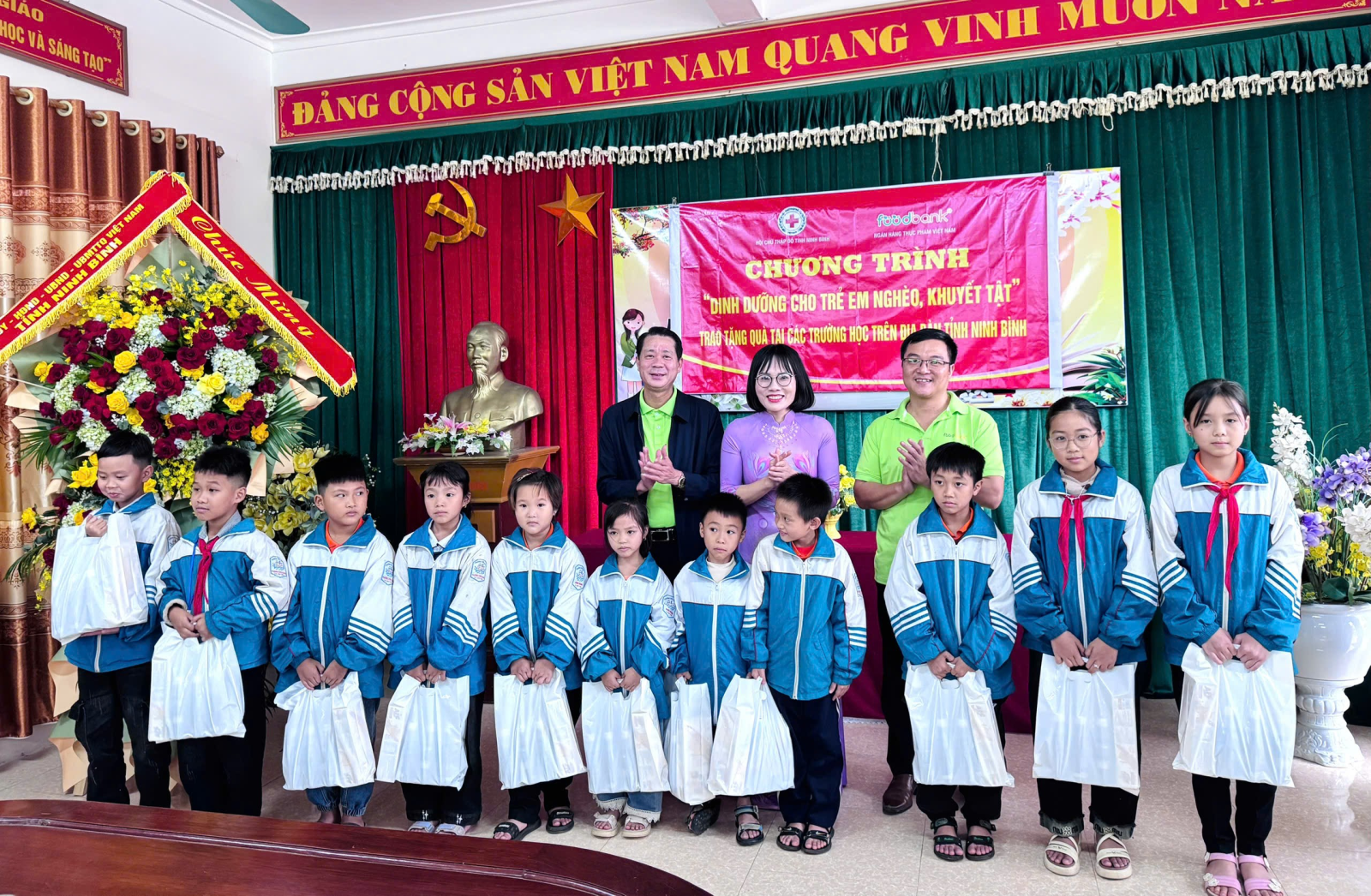 200 suất quà mỗi suất gồm sữa và bánh được phân bổ cho các trường: Trường Tiểu học A Châu Giang – Phường Duy Tân: 50 suất; Trường Tiểu học Chuyên Ngoại – phường Duy Tiên: 50 suất; Trường Tiểu học Yên Chính – xã Phong Doanh: 100 suất. Tổng giá trị gần 20 triệu đồng.