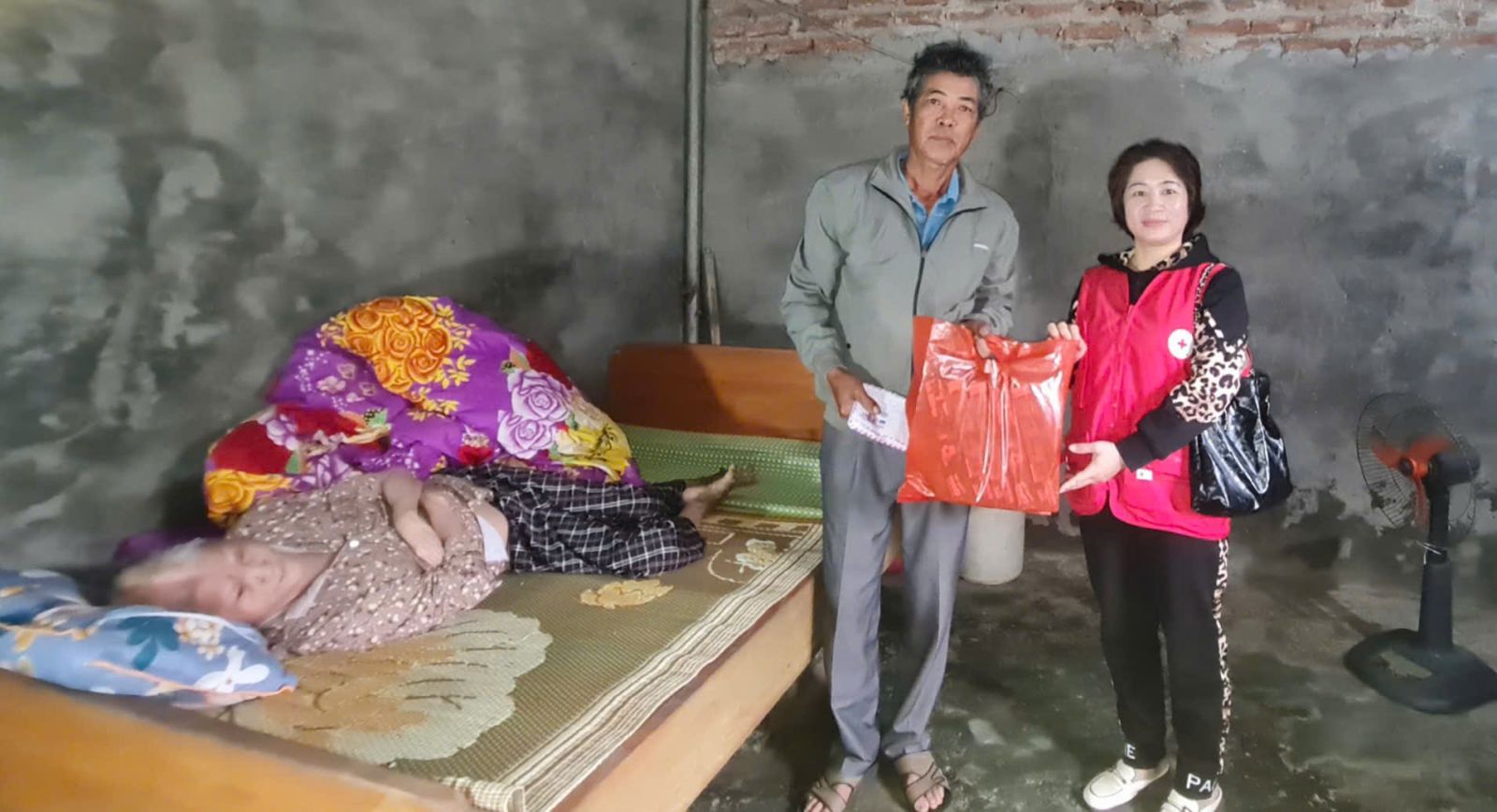 Bà Nguyễn Thị Thanh Bình - Trưởng Ban Công tác xã hội Hội Chữ thập đỏ tỉnh trao quà cho đại diện gia đình