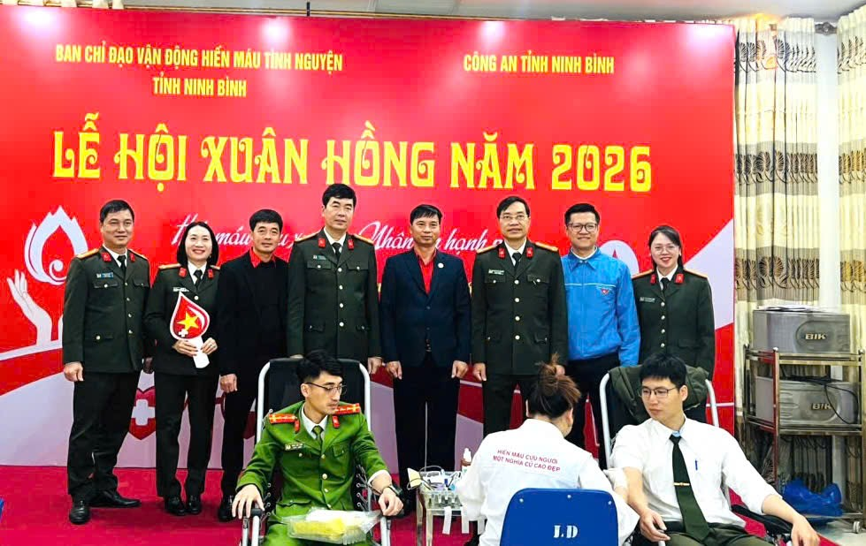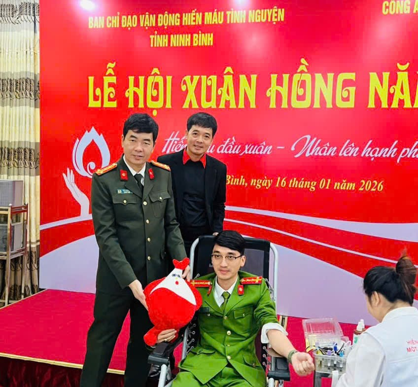 Ngày 16/01/2026, tại tỉnh Ninh Bình, Hội Chữ thập đỏ tỉnh đã phối hợp với Công an tỉnh và Viện Huyết học – Truyền máu Trung ương tổ chức chương trình hiến máu tình nguyện với chủ đề “Hiến máu đầu xuân – Nhân lên hạnh phúc”. Công an tỉnh là đơn vị đầu tiên trong tỉnh hưởng ứng Lễ hội Xuân Hồng 2026. Đây là hoạt động ý nghĩa được tổ chức thường niên, nhằm phát huy tinh thần nhân ái, sẻ chia vì cộng đồng, đặc biệt trong dịp đầu xuân mới.