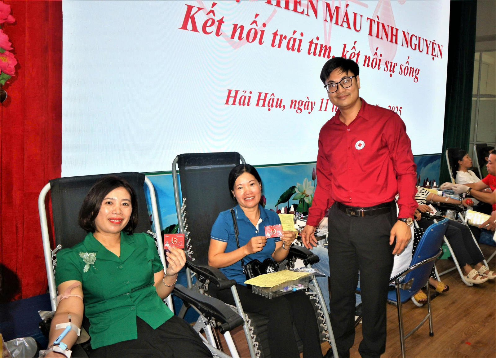 Ngày 11/10, tại Nhà văn hóa xã Hải Hậu, không khí hiến máu diễn ra sôi nổi với sự tham gia của hơn 800 cán bộ, công chức, viên chức, người lao động và nhân dân thuộc ba xã Hải Hậu, Hải Anh và Hải Hưng. Với tinh thần nhân ái và trách nhiệm cộng đồng, Ban Tổ chức đã tiếp nhận được 753 đơn vị máu an toàn.