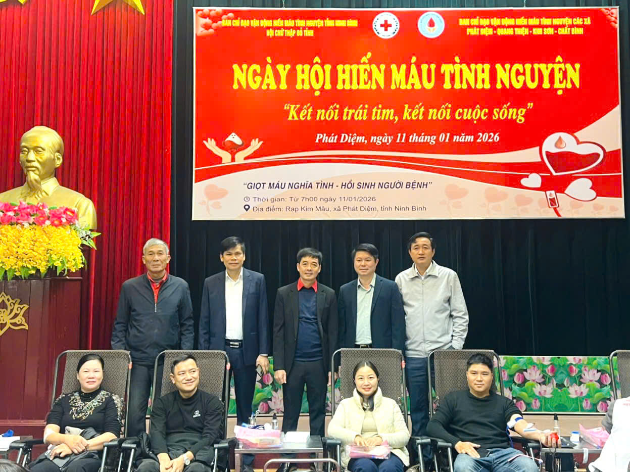 Sáng 11/01/2026, Hội Chữ thập đỏ tỉnh Ninh Bình phối hợp với Ban Chỉ đạo Vận động Hiến máu tình nguyện các xã Kim Sơn, Chất Bình, Phát Diệm và Quang Thiện, Bệnh viện Đa khoa Phú Thọ tổ chức Ngày hội hiến máu tình nguyện năm 2026. Chương trình diễn ra trong không khí trang trọng, ấm áp, mang thông điệp đầy ý nghĩa “Kết nối trái tim – kết nối sự sống”.