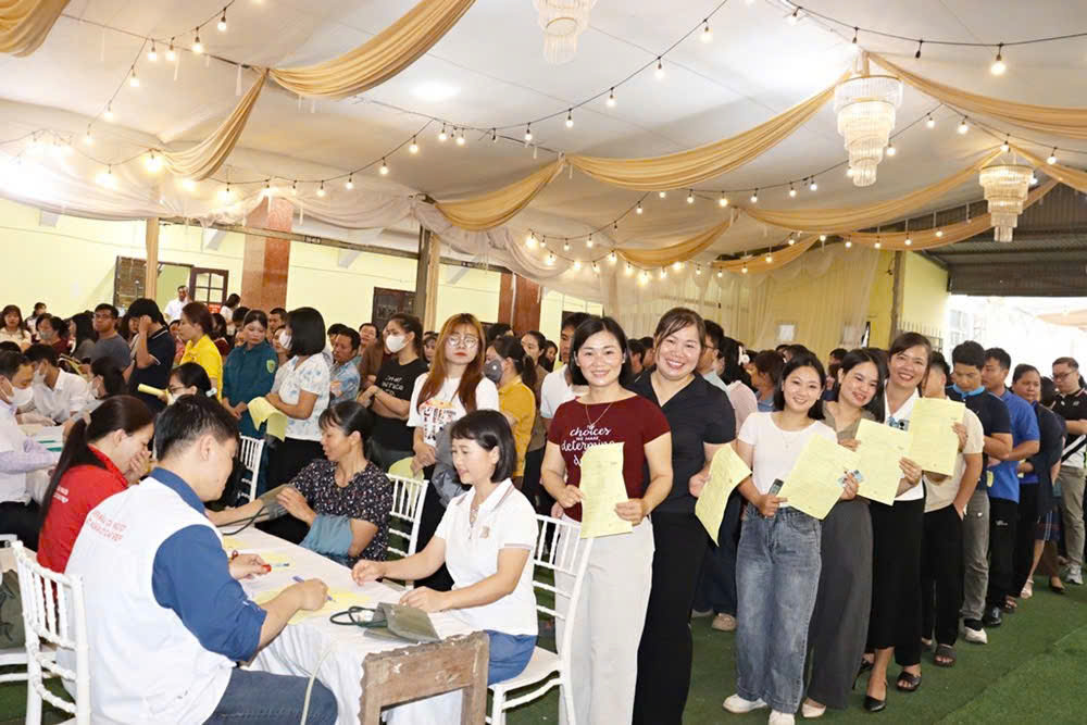Đông đảo tình nguyện viên tại điểm xã Giao Thủy hào hứng đăng ký tham gia hiến máu