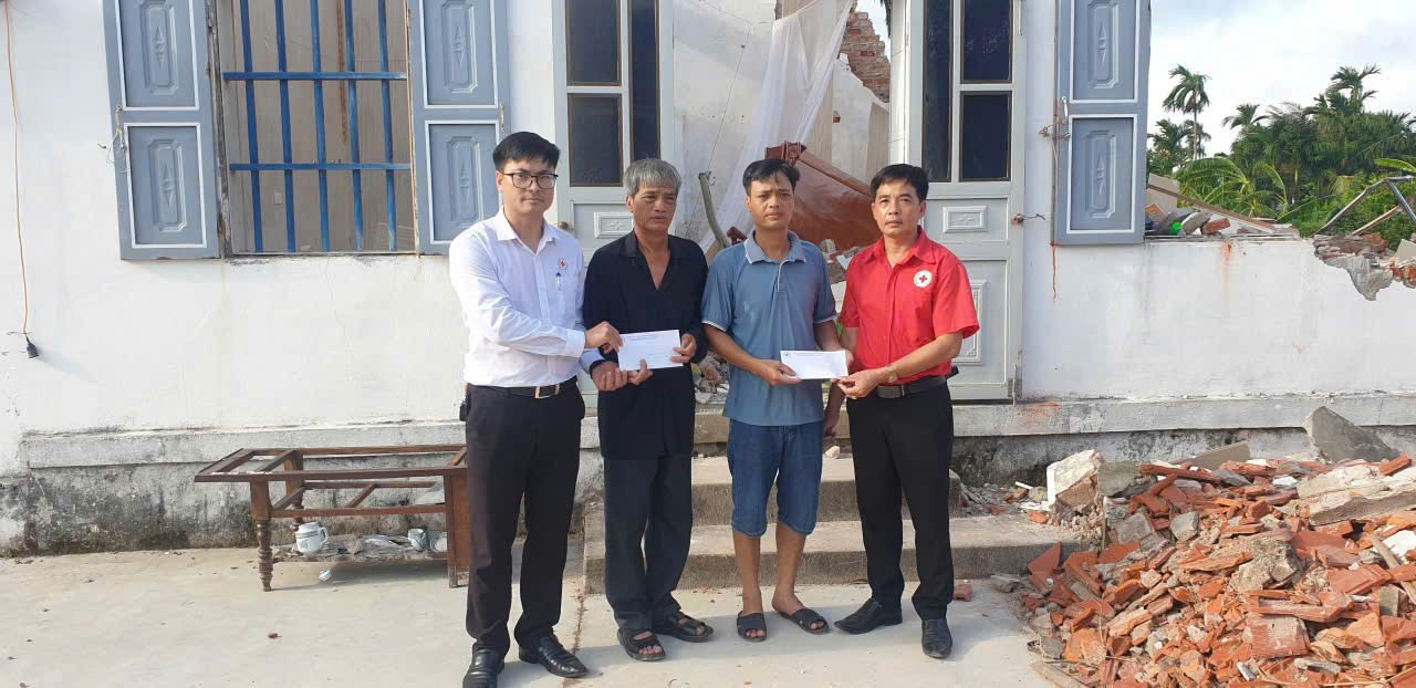 Tiếp tục những hoạt động khẩn trương hỗ trợ người dân thiệt hại nặng nề sau cơn bão số 10, ngày 01/10/2025, Hội Chữ thập đỏ tỉnh phối hợp với các nhà hảo tâm, nhà tài trợ đến thăm, động viên, trao hỗ trợ cho 4 gia đình có người tử vong tại xã Qũy Nhất, 1 gia đình tại xã Hồng Phong.