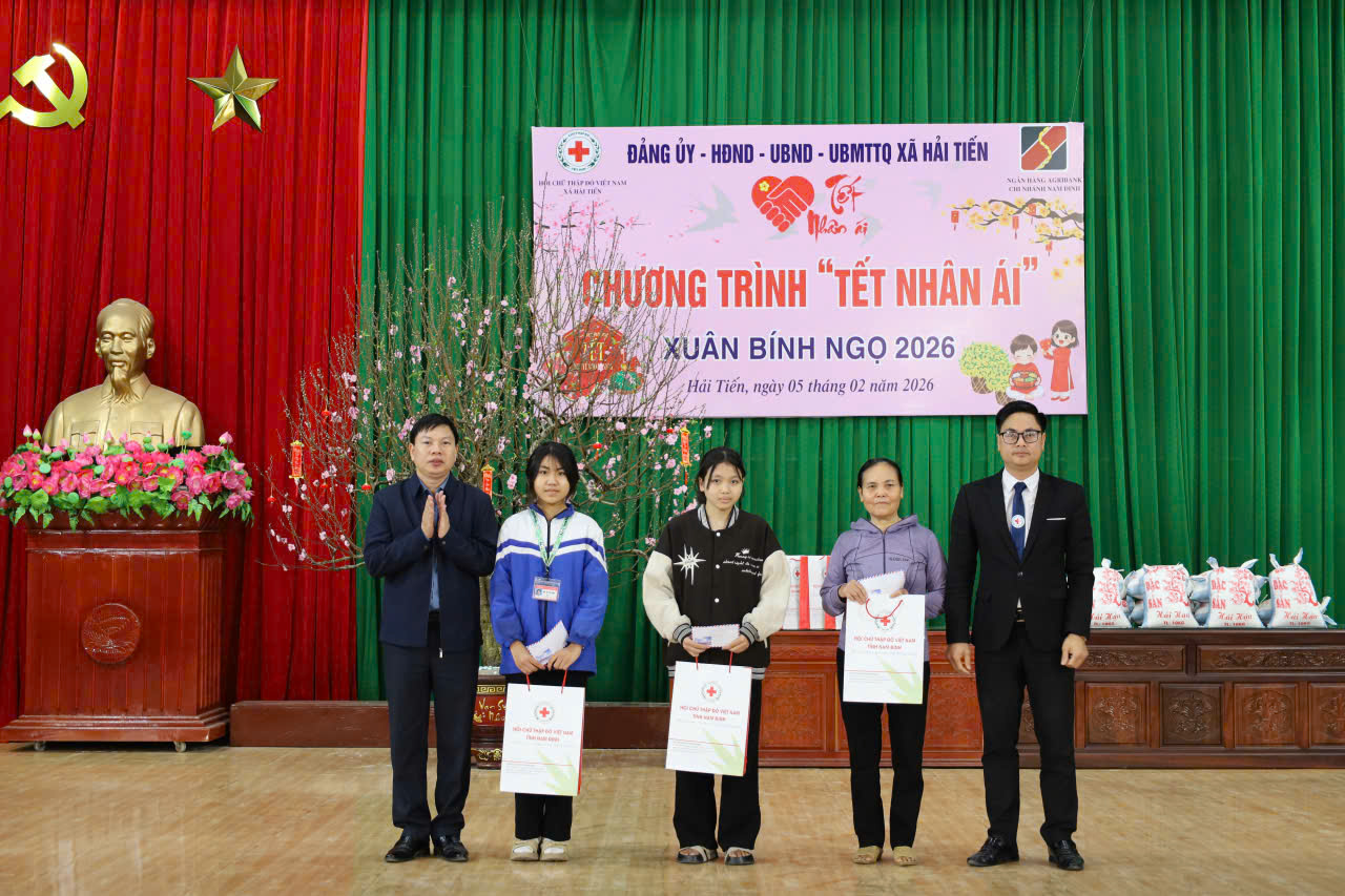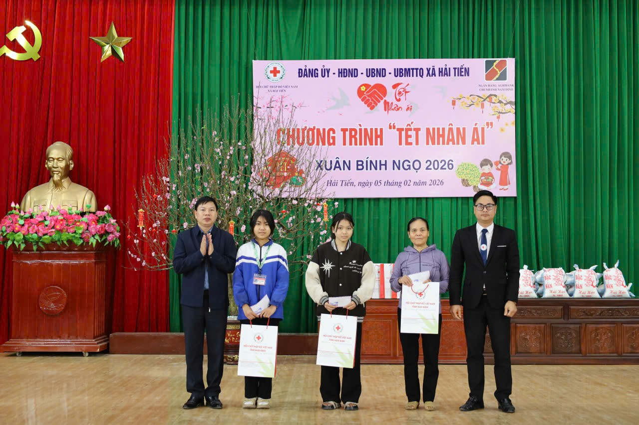 Ngày 05/02/2026, Hội Chữ thập đỏ tỉnh Ninh Bình đã phối hợp với chính quyền địa phương tổ chức chương trình trao quà cho các gia đình có hoàn cảnh khó khăn tại xã Hải Tiến và xã Hồng Phong, góp phần sẻ chia khó khăn, động viên tinh thần người dân vươn lên trong cuộc sống.