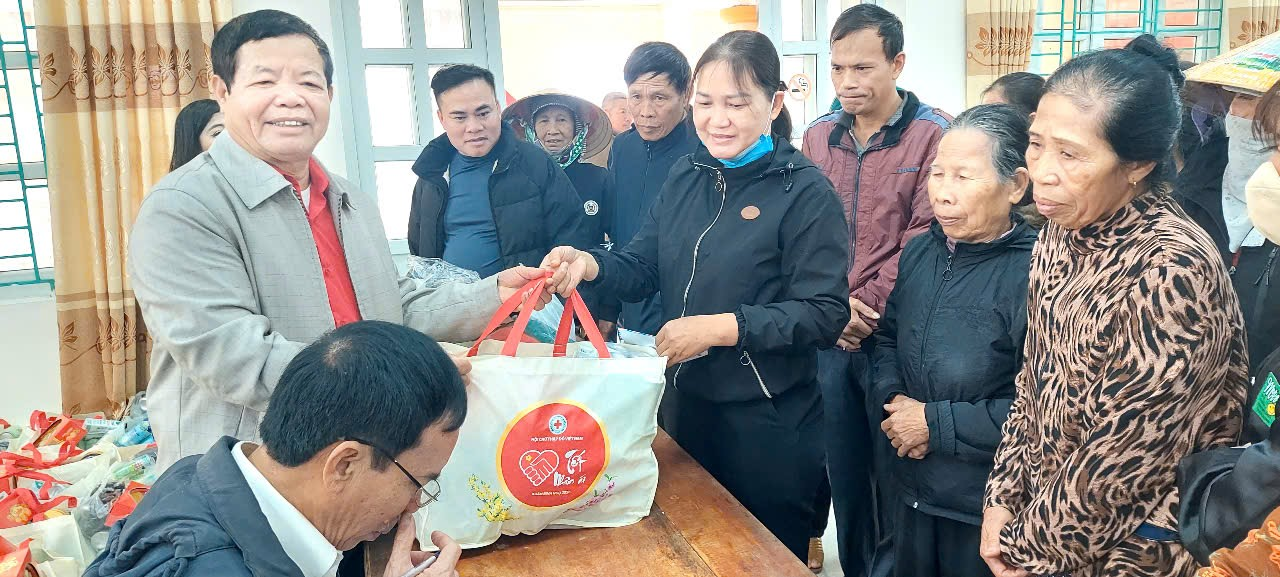 Ông Trần Phước Thắng - Phó Chủ Tịch Hội Chữ thập đỏ tỉnh Ninh Bình trao quà Tết cho các hộ gia đình có hoàn cảnh khó khăn tại xã Hải Tiến
