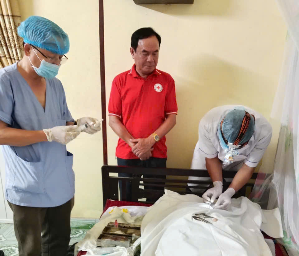 Hội Chữ thập đỏ xã Bình Minh phối hợp với Ngân hàng Mắt Trung ương tiếp nhận đôi giác mạc hiến tặng của ông Hoàng Văn Bản
